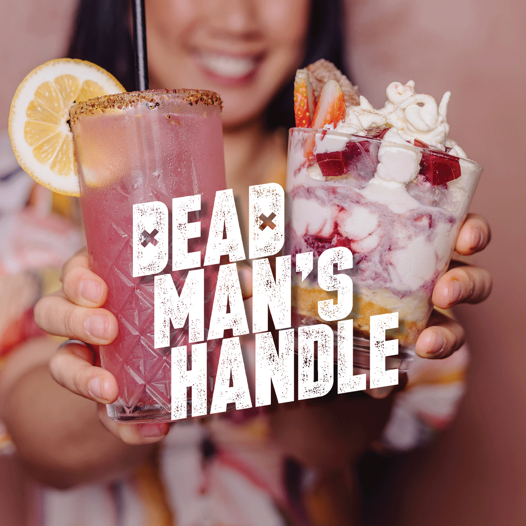 And if you need something to sip while you’re losing your mind over dessert , The Dead Man’s Handle, our el Jimador tequila mix with bittersweet liqueur, almond and Tajín rim is here for a limited time only.