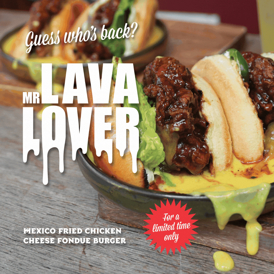 Say hello to MR. LAVA LOVER, the Mexico Fried Chicken Cheese Fondue Burger. This burger isn’t just made with cheese, it’s bathing in it. Before lounging in a pool of cheese fondue drizzled with chilli oil from our mates at Apostle Hot Sauce, our beloved fried chicken is dunked into house-made tequila BBQ sauce, topped with jalapenos, lettuce (for health, obvs), chipotle mayo and even more cheese, then served in a brioche bun.